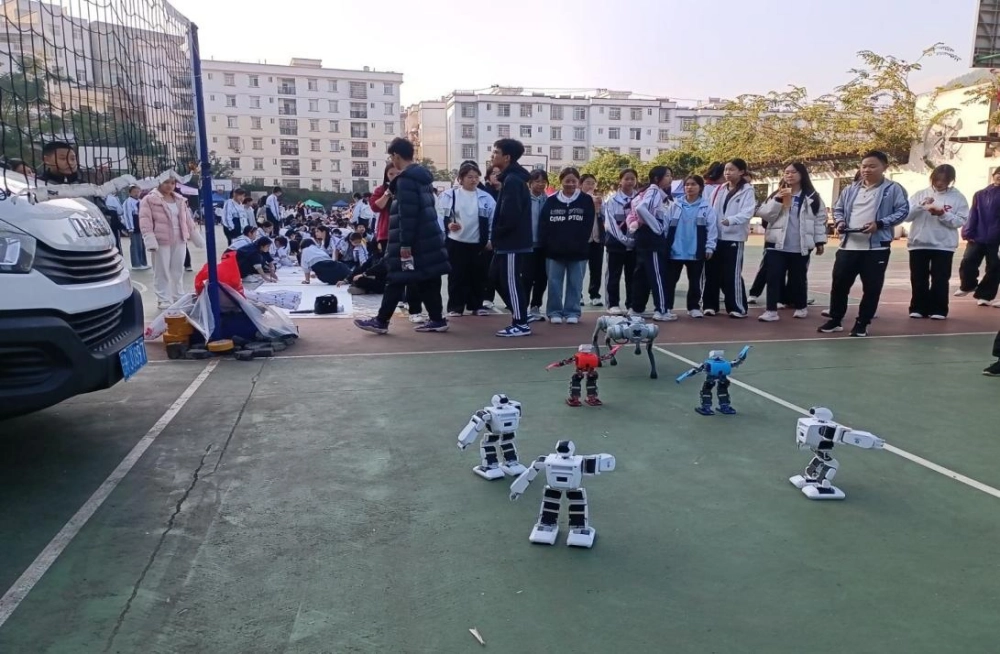 活动现场,这个临时出现的活动“科技馆”吸引了众多同学的注意和参与,车载涵盖力学、电磁、数学思维等多领域互动科普展品,整齐陈列,瞬间点燃了学生们的好奇心,同学们兴致勃勃围在展台前,亲手操作、亲身体验,在“试一试”“想一想”的过程中感受科学的神奇,跳舞的机器人,灵活跃动的机器狗引得同学们跃跃欲试,都要抢着操控一把,VR体验互动设备更是让同学们惊呼,“哇,太牛了!”惊叹声、讨论声、欢笑声此起披伏,科学的种子在轻松愉悦的氛围中悄然播撒。