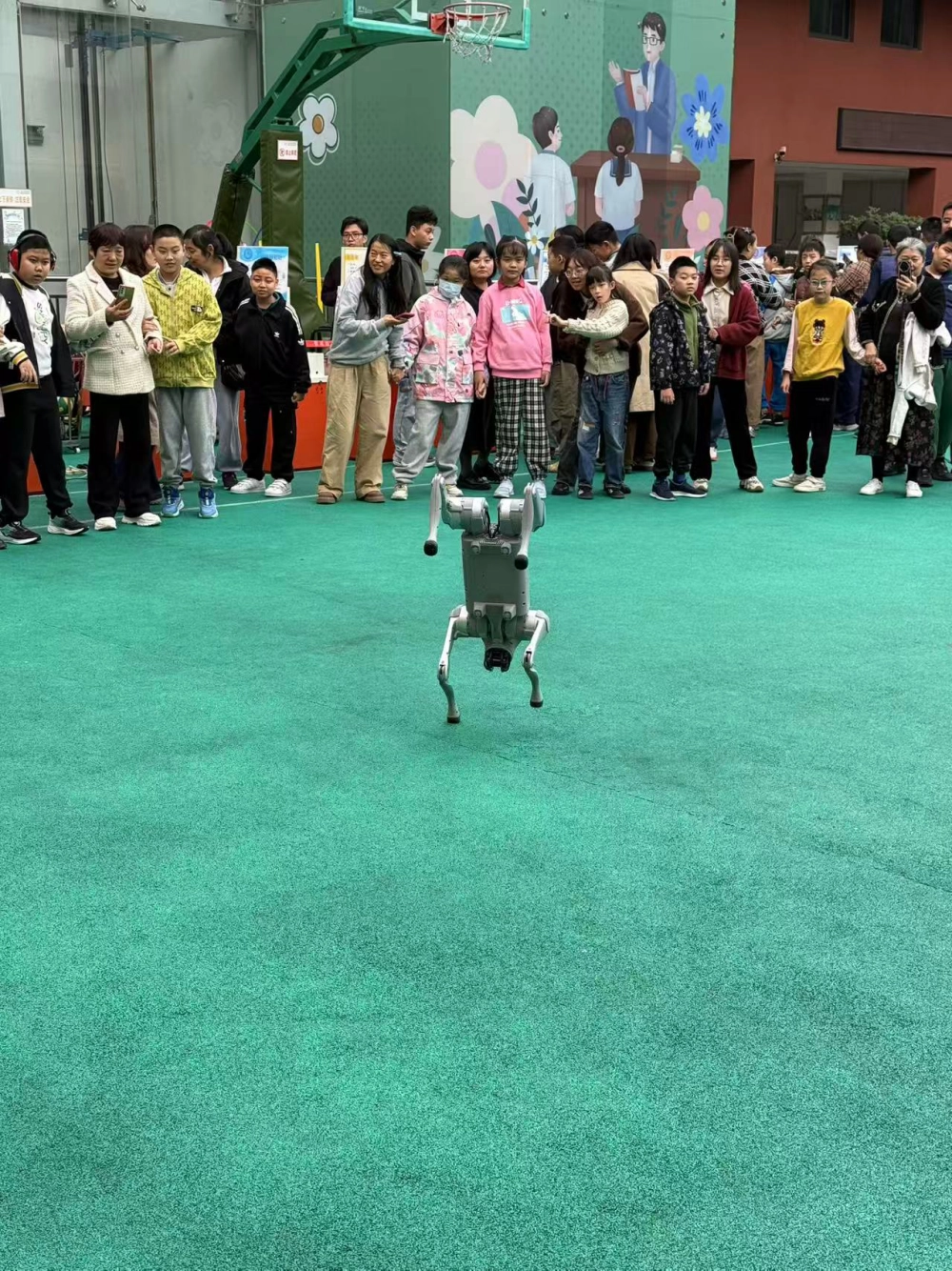 紧接着,机器狗“小白”的登场,彻底“萌化”了全场。它不仅有憨态可掬的外形,更能灵活地行走、跳跃,甚至温柔地伸出“小手”与孩子们互动。当听到语音指令并准确完成时,孩子们的惊讶与喜悦溢于言表。他们纷纷上前合影,在这一刻,科技不再是遥远的名词,而是触手可及的温暖陪伴。