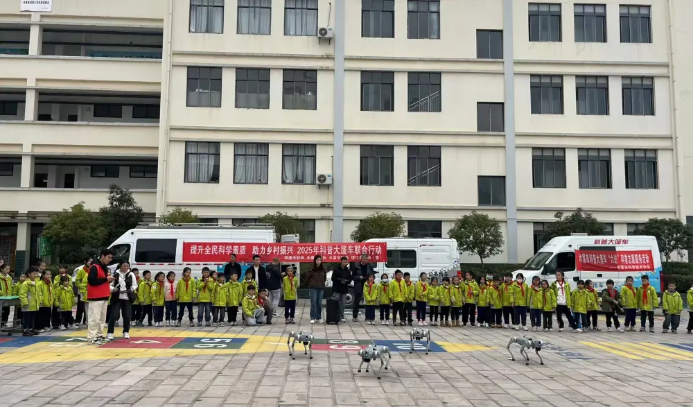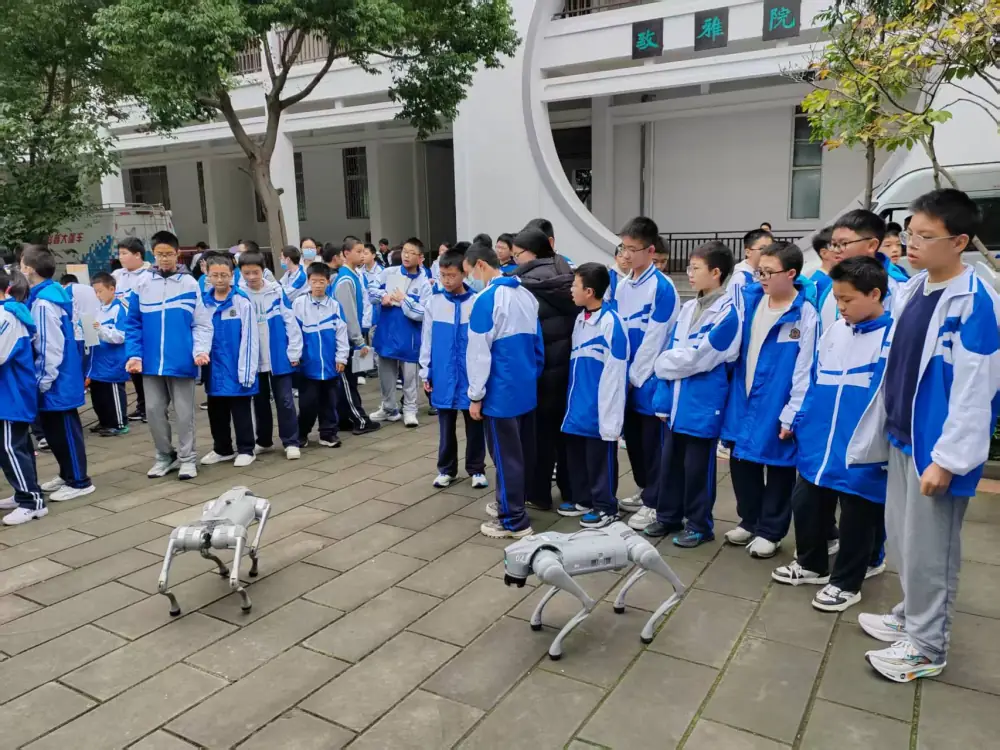 活动分别走进永善县城南小学、水富市云天化中学及幼儿园、绥江县城关中学。活动现场,各类科普展具整齐排列,同学们在科普志愿者的引导下,有序体验了益智棋盘、VR眼镜,现场响起了热烈的交流与欢呼声,另一边,同学们与机器狗积极互动,争相与可爱的“小狗”合影,机器狗也表演后空翻、倒立、直立等高难度动作,吸睛一片,成为本次活动当之无愧的团宠。