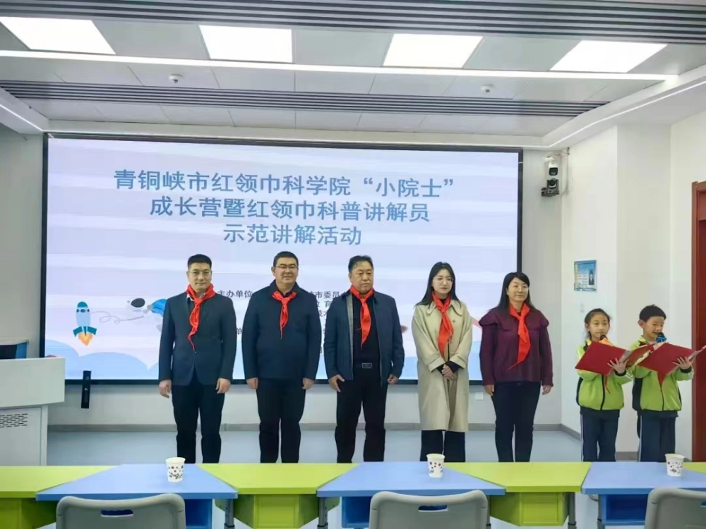 为深入贯彻落实党的二十届四中全会精神,为全市青少年儿童打造启迪科学兴趣、孕育创新精神的科普实践阵地,11月14日,市科协联合团市委、市教育局共同举办的青铜峡市红领巾科学院“小院士”成长营暨红领巾科普讲解员示范讲解活动,在青铜峡市第二小学顺利举行。市科协、团市委和市教育局相关领导,首批受聘的红领巾科普辅导员、学校推荐的“小院士”成长营学员及少先队员代表等50余人参加活动。