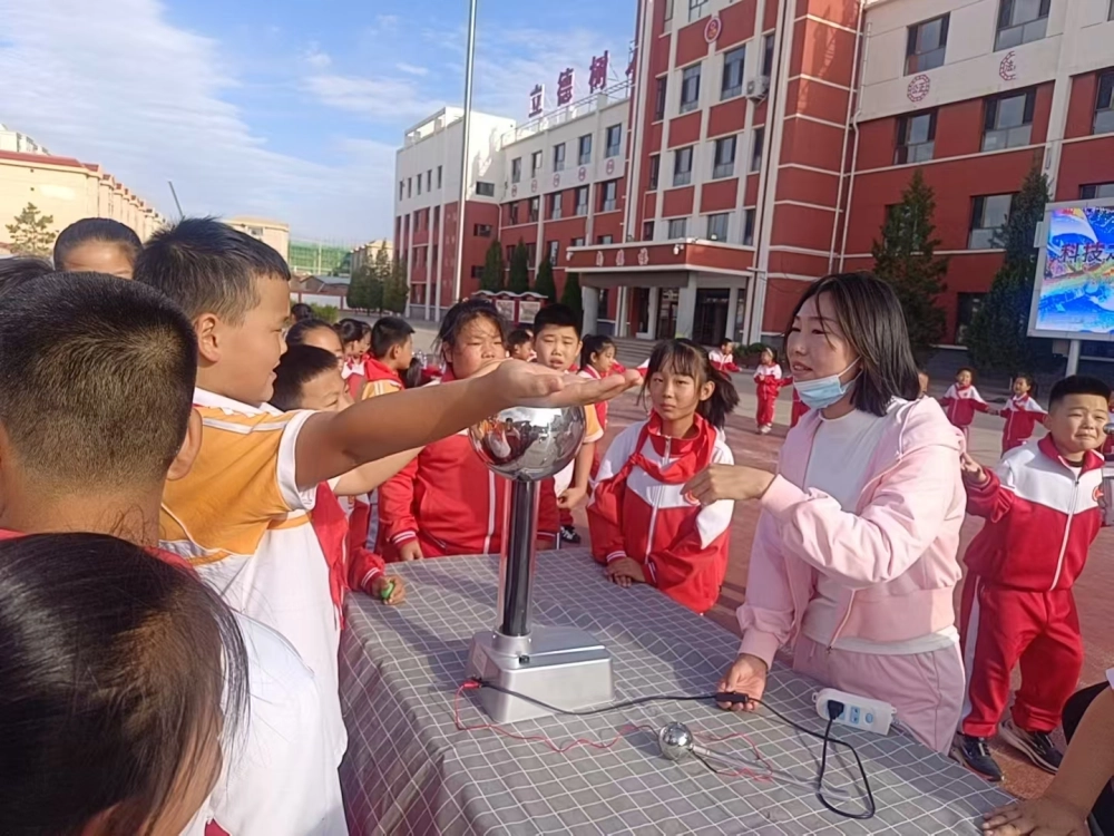 活动中,乌拉特前旗青少年科技馆的工作人员为第九小学的师生们带来了精彩的“科学实验秀”。