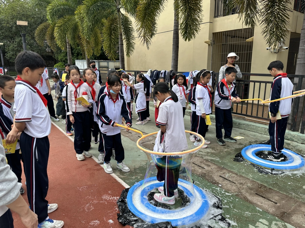 活动现场气氛热烈,精彩纷呈。动感十足的机器人舞蹈与翱翔天空的航模表演引发现场阵阵欢呼;神奇的超大泡泡体验区充满了孩子们的惊叹。本次活动共设置了包括辉光球、马德堡半球、冲天水火箭、人体导电灯、伯努利火箭等在内的32个互动体验项目。同学们在各个展台前流连忘返,通过亲手操作、直观感受,深入理解了电磁、气压、流体力学等基础科学原理在生活中的奇妙应用,在玩乐中激发了浓厚的科学兴趣。