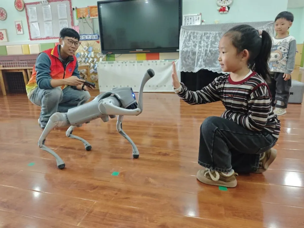 科技大篷车带来了跳舞的圆形针、笼中鸟、无弦琴等十四件互动展品,其中机器狗灵活穿梭、互动卖萌;机器人随指令灵动展演,更是成为现场焦点。这些产品涵盖力学、光学、声学等多领域,让孩子们在动手操作中触摸科学本质。每一件展品都是“现象—原理—应用”的微型科普课堂,孩子们在反复操作、观察探究中,建立“科学源于生活”的认知,让前沿科普资源成为启蒙思维的“活教材”。