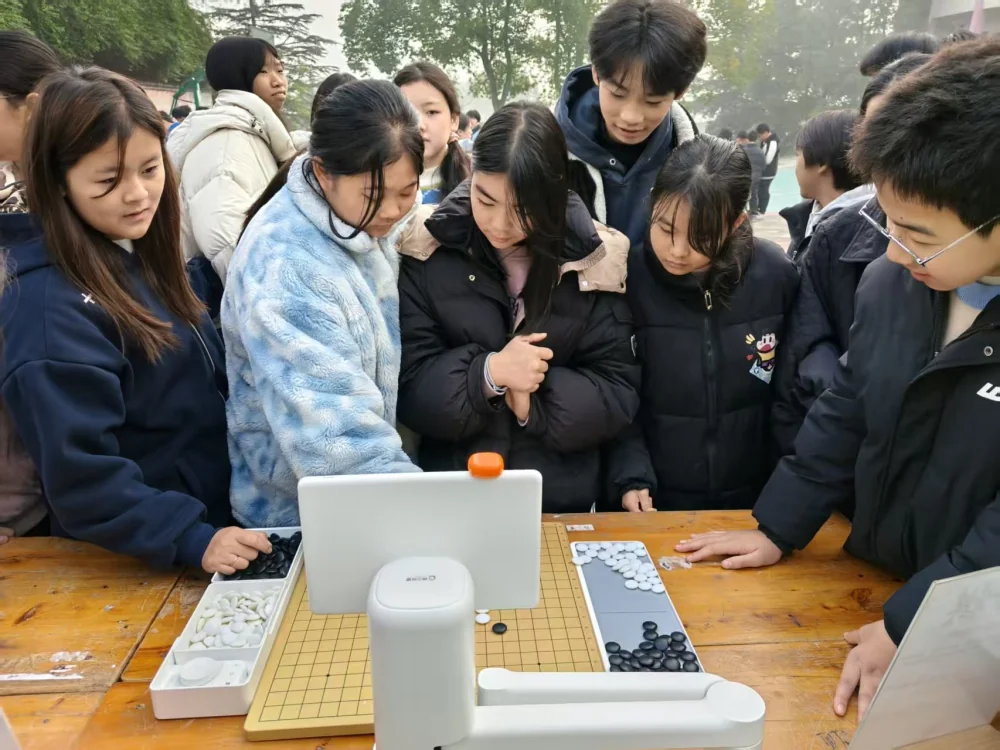 活动现场,科普大篷车展示了异形齿轮、队列行进、窥视无穷、短期记忆测试、一笔画、天鹅绒触觉、八仙过海、六体归洞、多彩的拼块、心肺复苏等50余种涵盖数学、力学、脑科学等多个领域的科普互动展品。同学们在科技与科普志愿者的指导下动手操作,直观感受科学魅力。机器狗表演将现场气氛推向高潮,在工作人员的操控下,机器狗矫健的身姿、精湛的技艺,引得现场师生阵阵惊叹,掌声和欢呼声此起彼伏。阿尔法围棋机器人同样引人驻足,不少棋艺爱好者现场与AI“过招”,亲身体验人工智能在复杂决策中的卓越表现。新奇有趣的科普形式激发了学子们浓厚的探索兴趣,踊跃参与体验各项科普展品,现场气氛热烈,掌声与笑声不断。