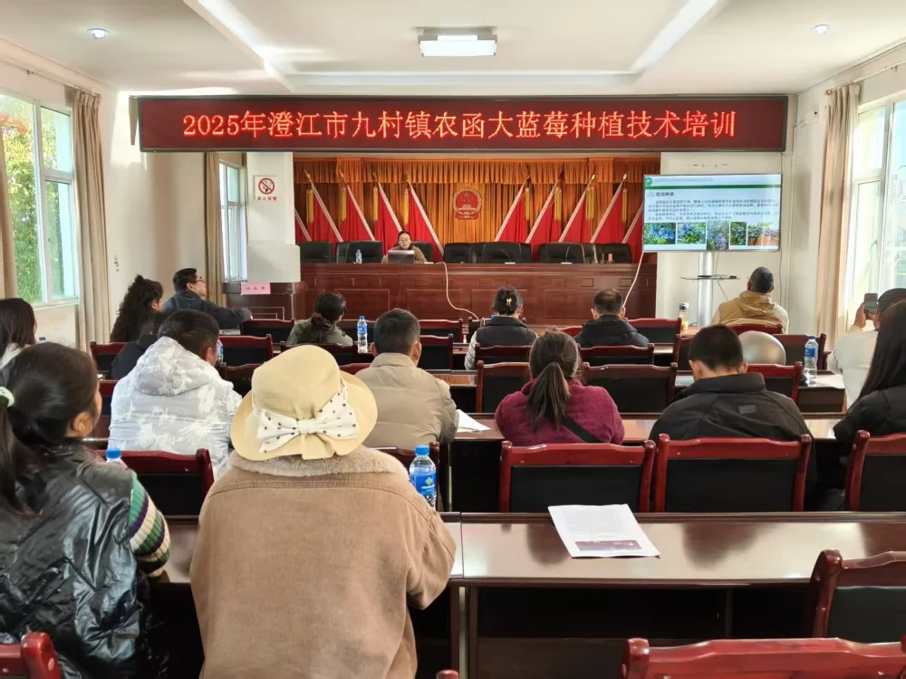 为提升蓝莓种植户科学种植水平,助力地方特色产业高质量发展,11月25日,澄江市农函大蓝莓种植技术培训在九村镇举办,来自九村镇辖区的40余名蓝莓种植户参加培训。