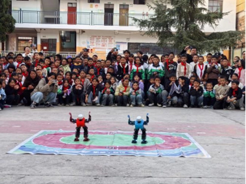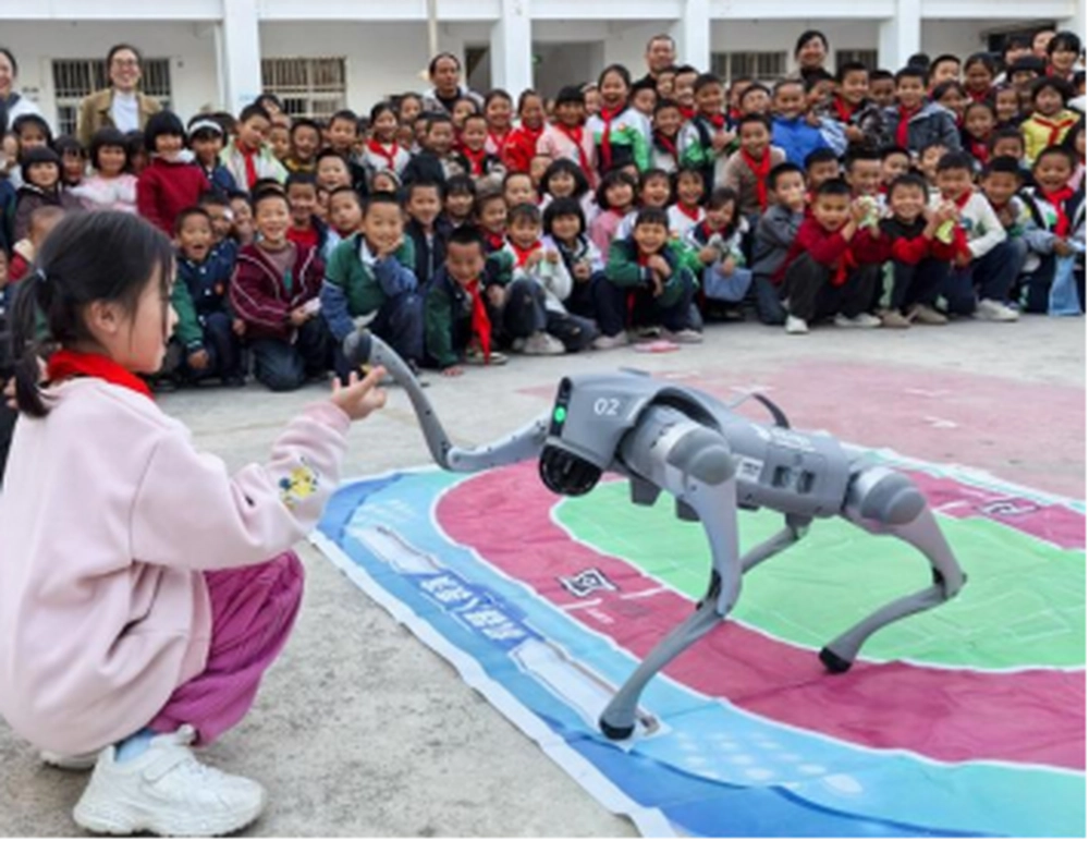 与此同时,砚山县科协的科普讲解员为孩子们带来了一场科技感十足的展示。智能机器人、仿生机器狗前沿科技产品一经亮相,便引发了学生们的阵阵惊叹。机器人精准流畅的动作、机器狗灵活敏捷的舞蹈表演,充分展现了人工智能的魅力。科普讲解员用通俗易懂的语言,为学生们揭示了各类展教设备的科学原理,引导他们思考科技如何改变生活。孩子们围在展品周围,眼中充满了好奇与求知的渴望,在互动体验中感受到了科学的无穷乐趣。