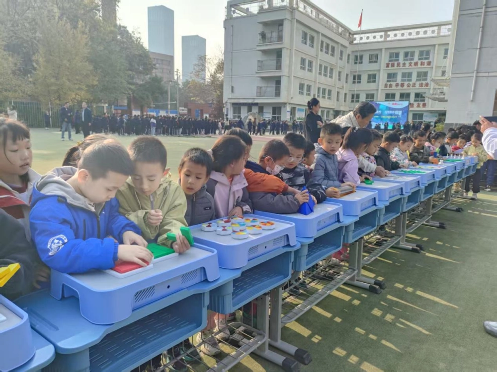 活动现场,各体验区域人气十足。元萝卜AI下棋机器人展台前,孩子们排起长队,这款智能设备凭借灵活的机械臂与专业棋力,在人机对弈中展现AI科技的神奇,实时语音讲解更让孩子们快速理解棋局策略。益智类资源包体验区里,学生们通过动手拼接、逻辑推理等操作,在实践中培养科学思维,巩固基础学科知识。