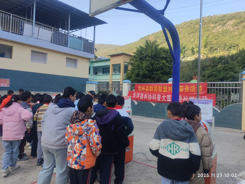 为丰富山区学生的科普知识储备,激发其科学探索热情,助力青少年全面健康发展,11月27日,华坪县科协组织“科普大篷车”走进荣将镇宏地村小学,开展了一场集趣味性、互动性、知识性于一体的科普宣传活动,让山区的孩子们在家门口就真切感受到了科学的魅力。