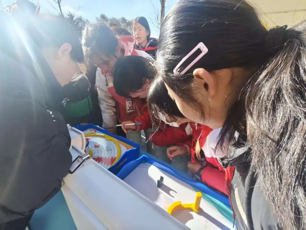 活动现场,科普大篷车展品体验区成为最受追捧的“科学打卡地”。20件互动展品前,学生们排起长队,在县科协工作人员的耐心引导下,通过转动摇杆、按压按钮、调整角度等简单操作,直观感受声音传播的奥秘、光学折射的奇妙以及力学原理的实用,一张张稚嫩的脸上写满好奇与专注,现场不时响起阵阵惊叹声。 科学家精神宣讲区同样人气高涨。18块图文并茂的展板,生动再现了钱学森、屠呦呦等科研巨匠的奋斗历程与光辉成就。科协讲解员结合具体科研故事娓娓道来,将科学家们“爱国、创新、求实、奉献、协同、育人”的精神内核融入讲解,让崇高精神如春雨般浸润孩子们的心田,在他们心中播下崇尚科学、追逐梦想的种子。