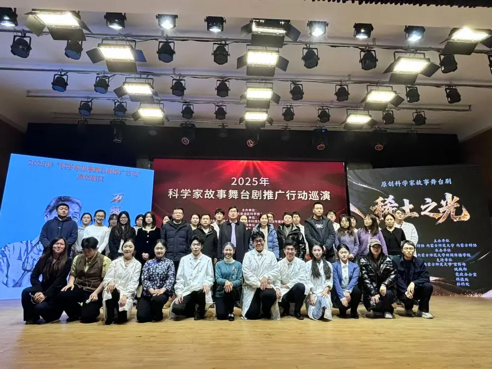 据悉,本次展演的两部剧目以戏剧演绎为载体,深度诠释了"爱国、创新、求实、奉献"的科学家精神。舞台上,内蒙古师范大学、集宁师范学院的学子们凭借真挚的情感、生动的表演,将科学家们的理想信念与责任担当展现得淋漓尽致,一个个感人至深的故事、一幕幕催人奋进的场景,让现场师生深受触动,不时响起热烈掌声。