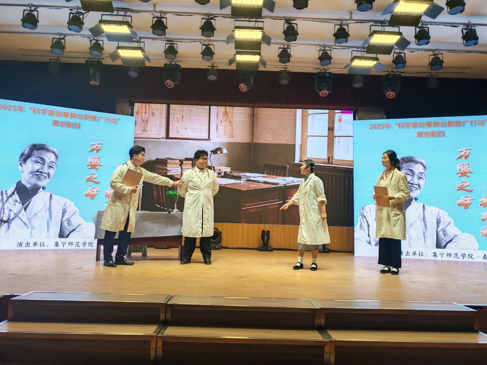 本次展演以"传承科学家精神 筑梦科技强国"为核心,精选两部荣获国家级科普舞台剧评比奖项的精品剧目重磅呈现。其中,由内蒙古师范大学学生主演的《稀土之光》,聚焦"中国稀土之父"徐光宪院士的科研人生。剧中生动演绎了徐光宪院士在国际技术封锁的困境中,毅然放下个人成就奔赴祖国需要之地,带领团队在内蒙古包头简陋实验室里日夜攻关,以"串级萃取理论"成功打破西方垄断,让中国稀土分离技术实现从跟跑到领跑的传奇历程,深刻彰显了科学家扎根祖国大地、服务国家战略的赤诚爱国情怀。另一部由集宁师范学院学生主演的《万婴之母——林巧稚》,则细腻讲述了"万婴之母"林巧稚放弃美国优渥条件毅然归国,一生坚守产房、亲手迎接上万生命的感人故事,用医者仁心诠释了"大爱无疆""生命至上"的奉献精神,两部剧目均以精湛的艺术呈现和深刻的精神内涵,入选国家级科普舞台剧评比并斩获佳绩。