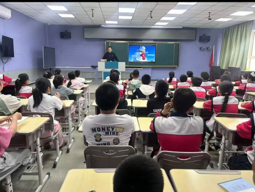 李冰老师以“揭开军事科技的奇妙面纱”为主题,巧妙构建了三大知识模块。课程从贴近生活的军事小常识切入,将复杂的武器装备原理化为易懂的趣味知识;通过讲述感人至深的军旅小故事,鲜活展现了当代军人保家卫国的忠诚与担当;更结合满洲里市历年军民共建、双拥工作的丰硕成果,用家乡身边的真实事例,让孩子们深刻理解“军民鱼水情”的深厚内涵。丰富的内容设计,将国防教育与乡土情怀紧密融合,点燃了现场学子的浓厚兴趣。“原来机枪是这样瞄准的!”、“解放军叔叔在边防巡逻真辛苦!”等童声稚语伴随着掌声与惊叹,气氛热烈。