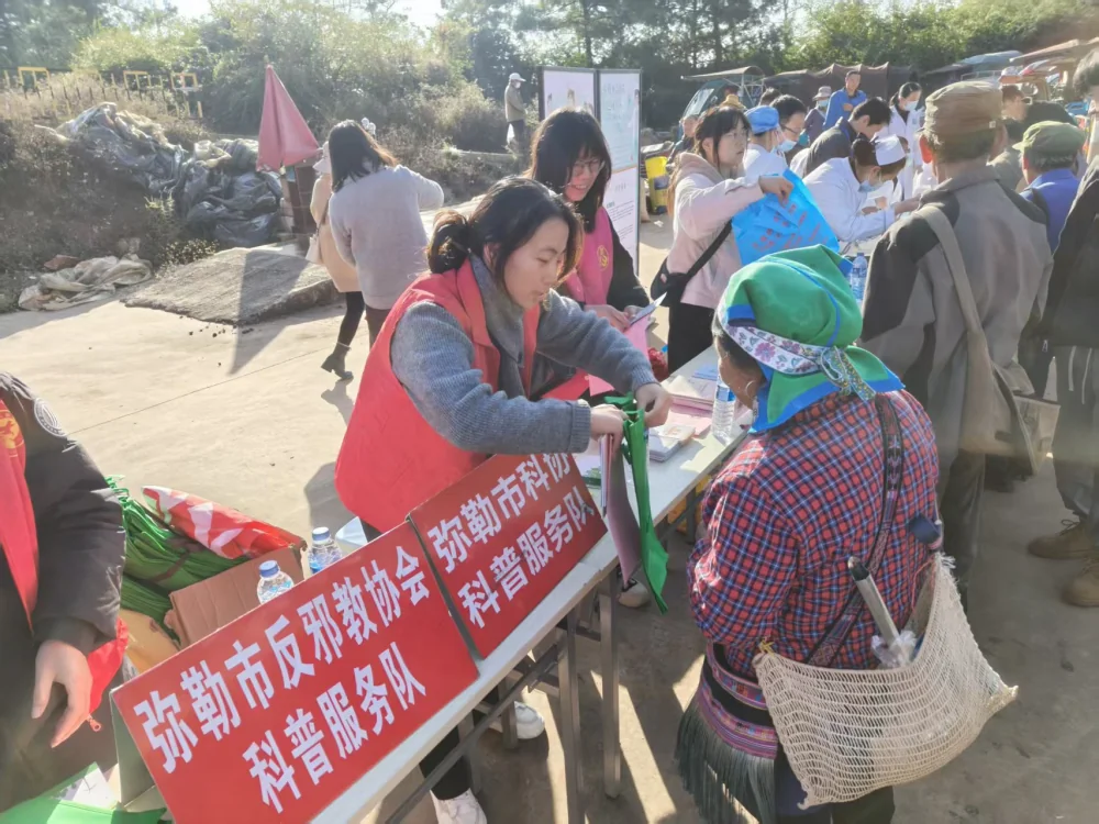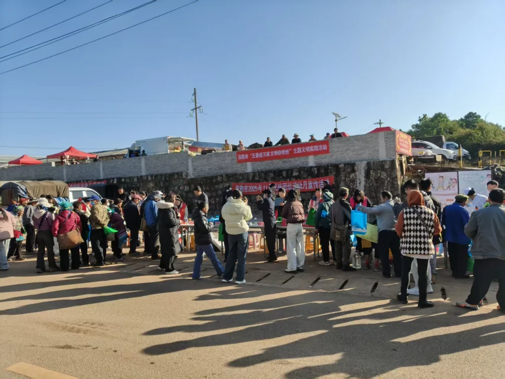 11月25日上午,一场以“五普进万家·文明你我他”为主题的文明实践活动在弥勒市西一镇油榨地农贸市场火热开展。弥勒市科协旨在通过形式多样、内容丰富的科普服务,推动科学技术、反对邪教和文明习惯深入人心,营造了讲科学、爱科学的良好氛围。