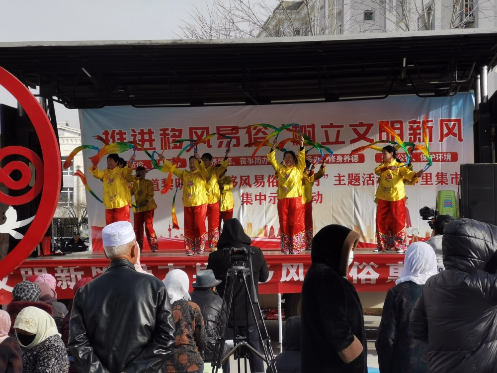 2025年12月2日下午,海原县科协、县法律援助中心等多家单位,在海城街道黎明社区文昌小区文化广场联合举办主题宣传活动。活动以“文明新风进大集·移风易俗惠邻里”“全民科普进万家·智慧生活乐开花”为主题,以老年大学艺术团体表演的形式传递文明树新风,移风易俗惠邻里的社会主义核心价值观和新时代婚嫁风俗。