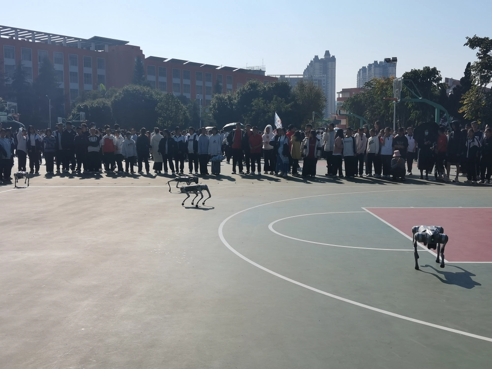 在虚拟现实科普展示区,学生们佩戴VR眼镜,沉浸式体验了太空探索、深海潜航等场景,身临其境地感受科技带来的视觉与认知冲击。人工智能互动区内,灵活敏捷的“机械狗”成为全场焦点,从灵活可爱的舞动到精准迅捷的自主导航,展示了机器人技术的生动应用,也进一步激发了学生对人工智能与未来科技的浓厚兴趣。