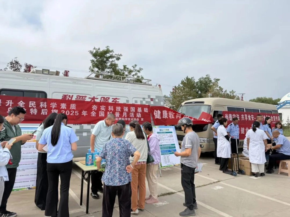 9月4日,乌拉特后旗巴音宝力格镇塞上社区小广场热闹非凡!乌拉特后旗科协联合旗市场监督局、旗蒙医院、旗科技服务中心,把“食品安全”科普宣传活动直接办进了居民家门口,带来了一场干货满满又接地气的便民服务,让大家在家门口就能学知识、享福利。
