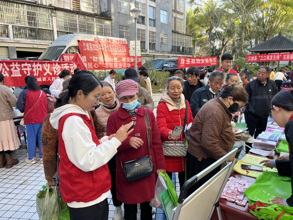 2025年12月2日上午,江城县“社区红色物业”银发志愿服务活动在东城佳苑小区顺利开展。活动由县委老干部局牵头,县科协作为群团联盟重要成员单位积极参与,聚焦老年群体需求,开展精准科普服务,受到社区居民热烈欢迎。