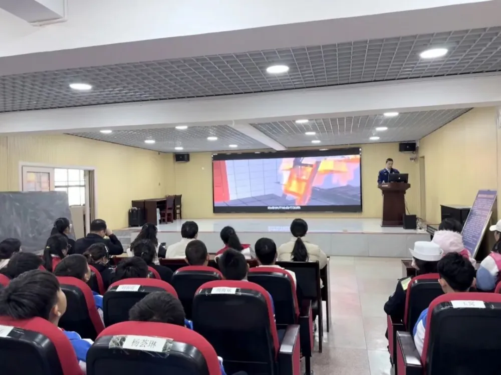 活动在严肃认真的氛围中拉开帷幕。全体人员集中观看了消防安全及交通安全警示教育宣传片,片中真实案例与警示画面直观呈现了忽视消防隐患、违反交通规则所带来的严重后果,使师生们对火灾预防与道路安全的风险形成了更为清醒和全面的认知。随后,县消防救援大队消防员与县公安局交通管理大队民警分别开展专业授课:县消防救援大队消防员聚焦校园与家庭防火实际,重点阐释了电气安全使用、初起火灾处置及疏散逃生自救等关键技能;县公安局交通管理大队民警系统讲解了日常出行规范、常见交通隐患识别及预防要点。整套课程内容翔实、阐释精准,有效强化了师生对安全风险的辨识能力与防范意识。