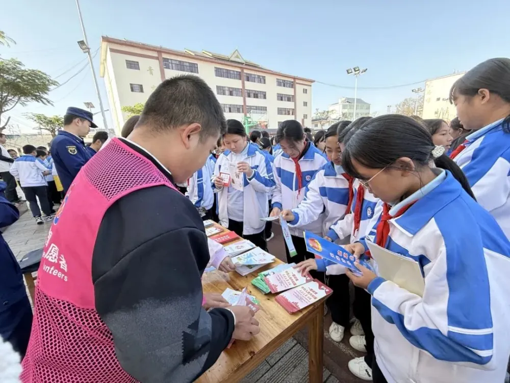 活动最后,勐海县群团“联盟”各成员单位及县公安局交通管理大队、县消防救援大队工作人员在校园操场设立安全宣传点,通过发放宣传手册、现场讲解和互动答疑等形式,开展面对面安全宣传教育。现场师生积极参与,工作人员针对各类安全问题予以细致解答,进一步强化了安全知识的实践运用。此次活动以“教育一个学生,影响一个家庭”为理念,推动安全知识由校园向家庭辐射,由学生带动家长共同增强安全意识,切实织密家校协同的安全防护网,为构建平安和谐的校园环境奠定坚实基础。