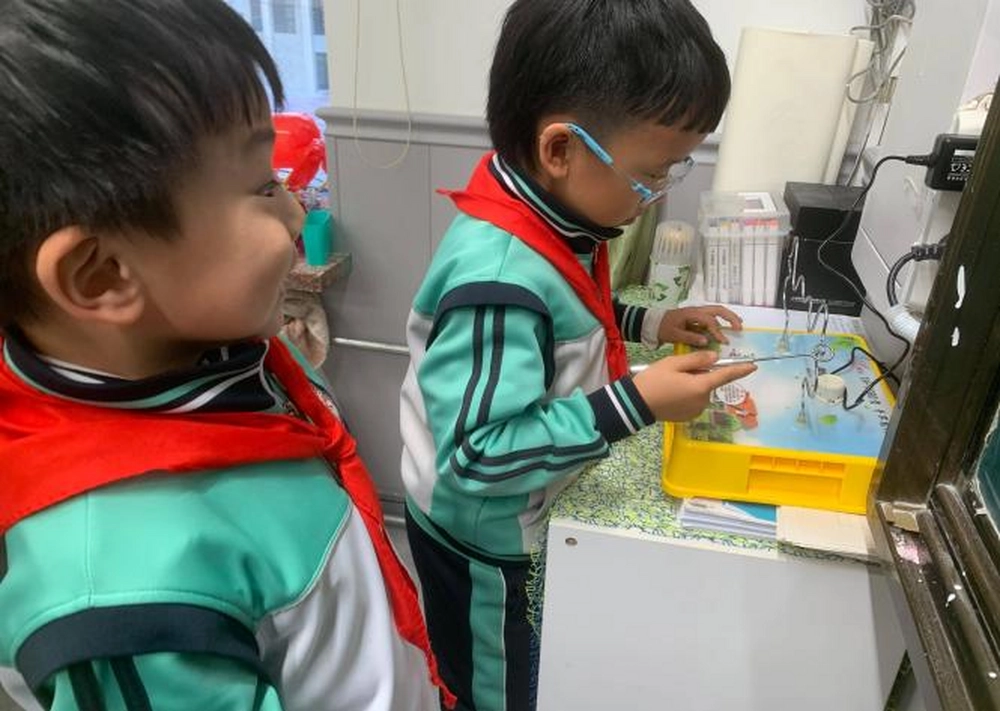 这是一场对心理素质和手部稳定性的极致考验。参与者需手持特制的金属圈,沿着弯曲的电线轨道缓慢移动,一旦触碰,警报器便会发出蜂鸣。全场时而鸦雀无声,时而爆发出成功的欢呼。这个游戏让同学们在紧张刺激中学习了电路通断的基本知识。