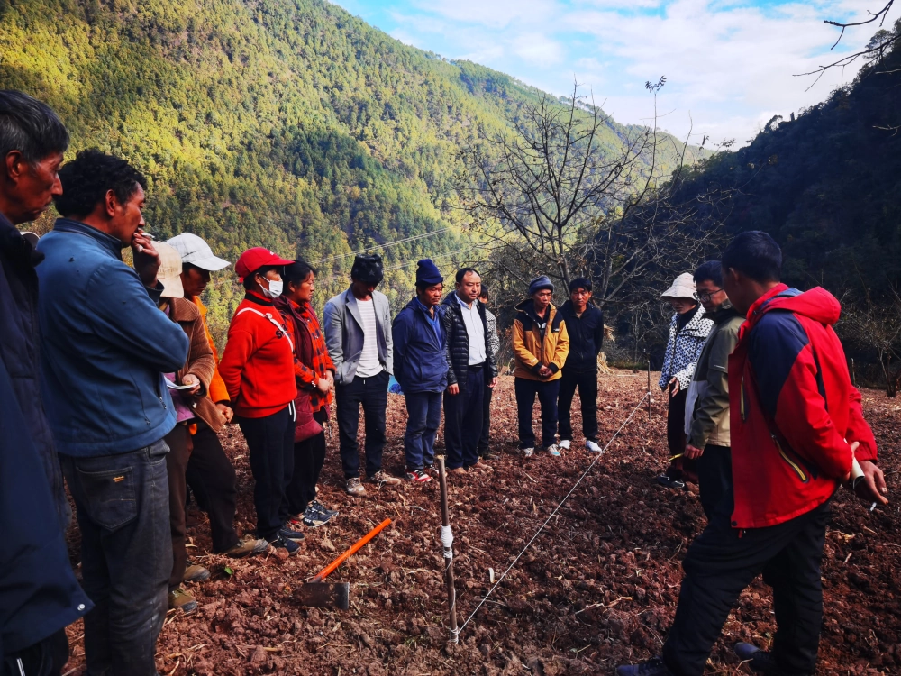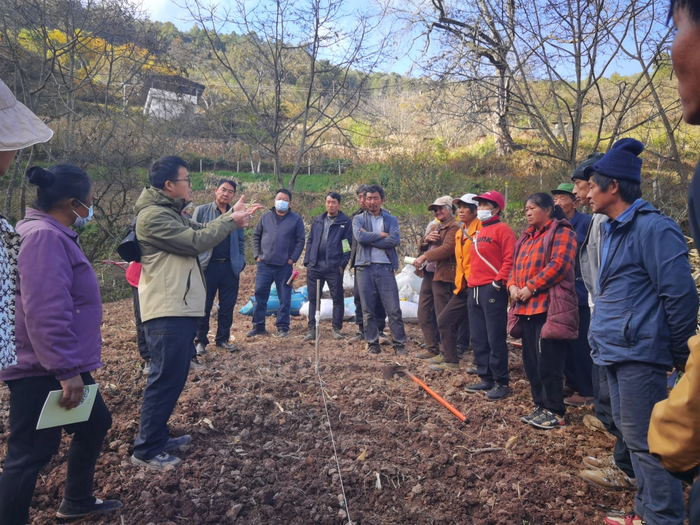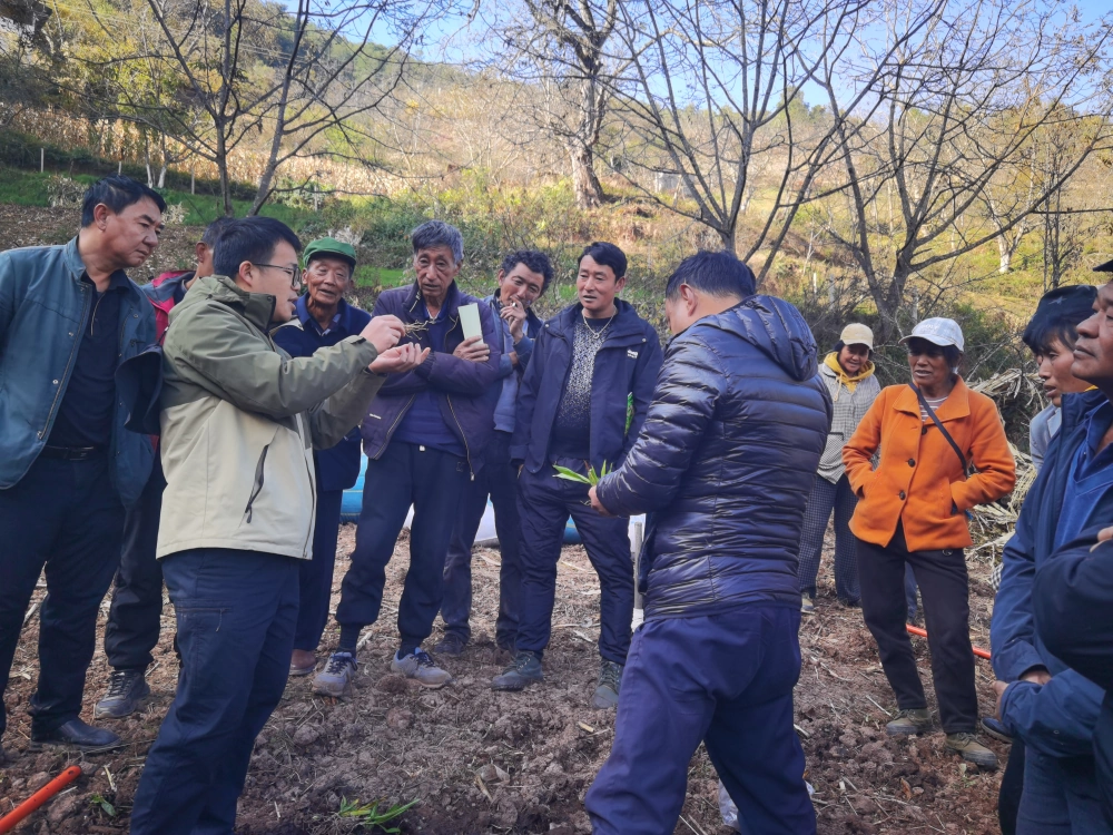 培训特邀云南省农业科学院药用植物研究所胡明举老师到场主讲。胡老师系统讲解了白芨的优良品种特性、显著药用价值及当前市场前景,结合当地气候条件和土壤特性,就选地要求、品种选择、基肥制备、种苗保管、科学施肥、病虫害绿色防控及综合田间管理等后续管护要点等内容进行了详细说明,并现场示范操作起垄、开沟、置苗、覆土等标准化栽植流程。针对种植户在实际生产中遇到的种苗成活率低、施肥不当、病害防治难等问题,提供了具有针对性的指导。