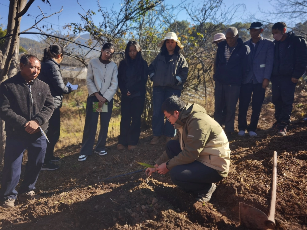 培训特邀云南省农业科学院药用植物研究所胡明举老师到场主讲。胡老师系统讲解了白芨的优良品种特性、显著药用价值及当前市场前景,结合当地气候条件和土壤特性,就选地要求、品种选择、基肥制备、种苗保管、科学施肥、病虫害绿色防控及综合田间管理等后续管护要点等内容进行了详细说明,并现场示范操作起垄、开沟、置苗、覆土等标准化栽植流程。针对种植户在实际生产中遇到的种苗成活率低、施肥不当、病害防治难等问题,提供了具有针对性的指导。