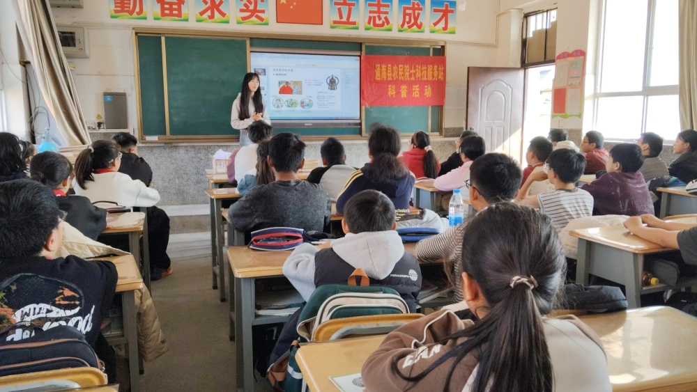 12月4日,通海县科协牵头组织通海叶菜科技小院、通海农民院士工作站驻院站云南农大科研团队开展“杞麓湖保护沿湖行”科普系列活动,第六站走进杨广镇云龙小学。