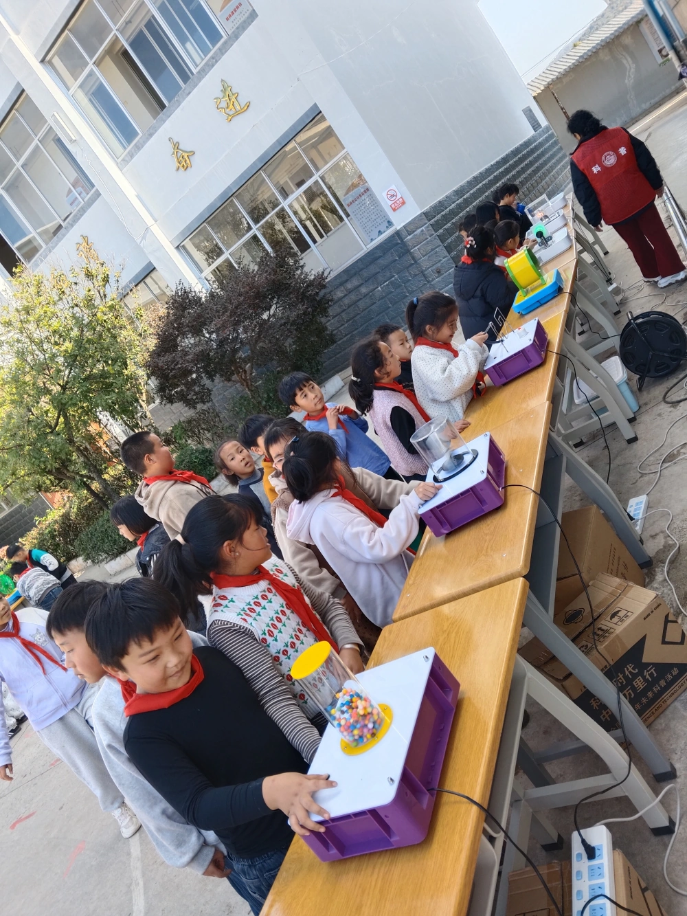 活动共展出科普仪器25件套,其中,新增科学仪器“宇宙中的地球、豌豆的旅行记、热导流实验、能量转换实验、针孔成像实验”五组,智能机器狗1套。科普器具集数理化、地理生物等多学科知识为一体,益智与趣味并存,各年级的学生们三五成群来到科学展具前动手操作、快乐体验。在共振鼓、人体发电、猜属相、魔镜、魔具、时光隧道、袋鼠下坡等器具前触摸体验。同学们争先恐后与机器狗亲密接触,与机器狗握手,机器狗伸腰、作揖、跳跃、摇头摆尾等姿态逗得同学们哄堂大笑。人机互动中打开了眼界,增长了见识。