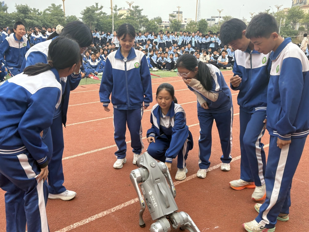 银灰色的机械狗灵活穿梭在校园田径场上,凭借精准的步态控制完成转向、避障等动作,引得坐在草坪上的学生们纷纷探头围观,此次展演旨在通过趣味互动的形式,激发学生对人工智能、机器人技术的兴趣,让科创思维融入校园日常。霜染冬枝添雅韵,青春逐梦启华章。