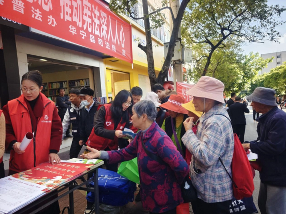 12月4日,在第十二个国家宪法日到来之际,云南省玉溪市华宁县科普大篷车积极响应全县统一部署,在县城人流量集中的东市街区域,参加了2025年“12・4”国家宪法日集中法治宣传活动,此次活动旨在深入学习宣传贯彻习近平法治思想,推动宪法精神与法治理念深入基层、走近群众。