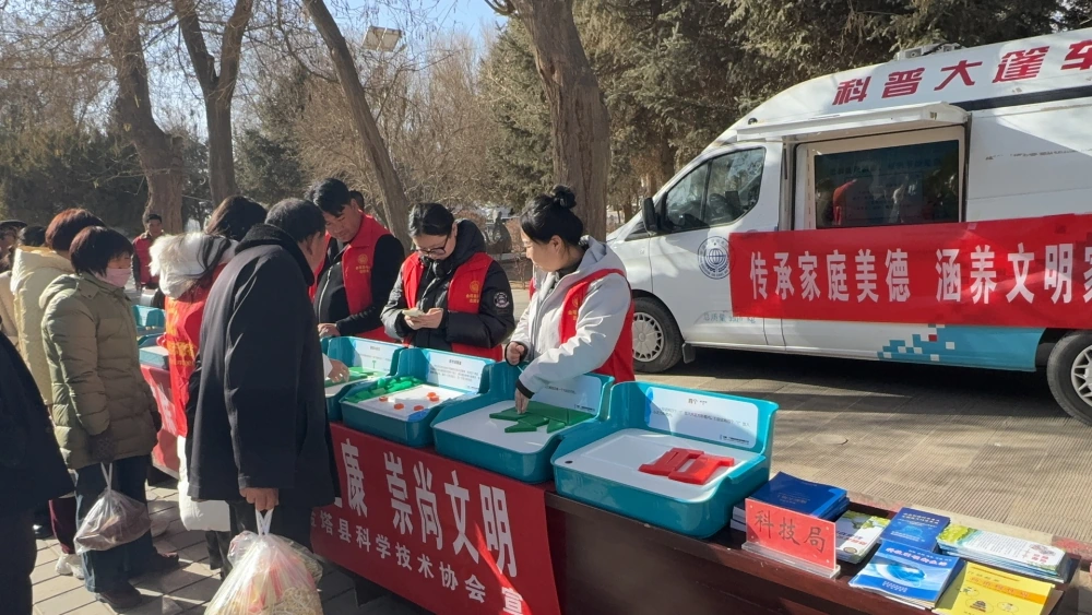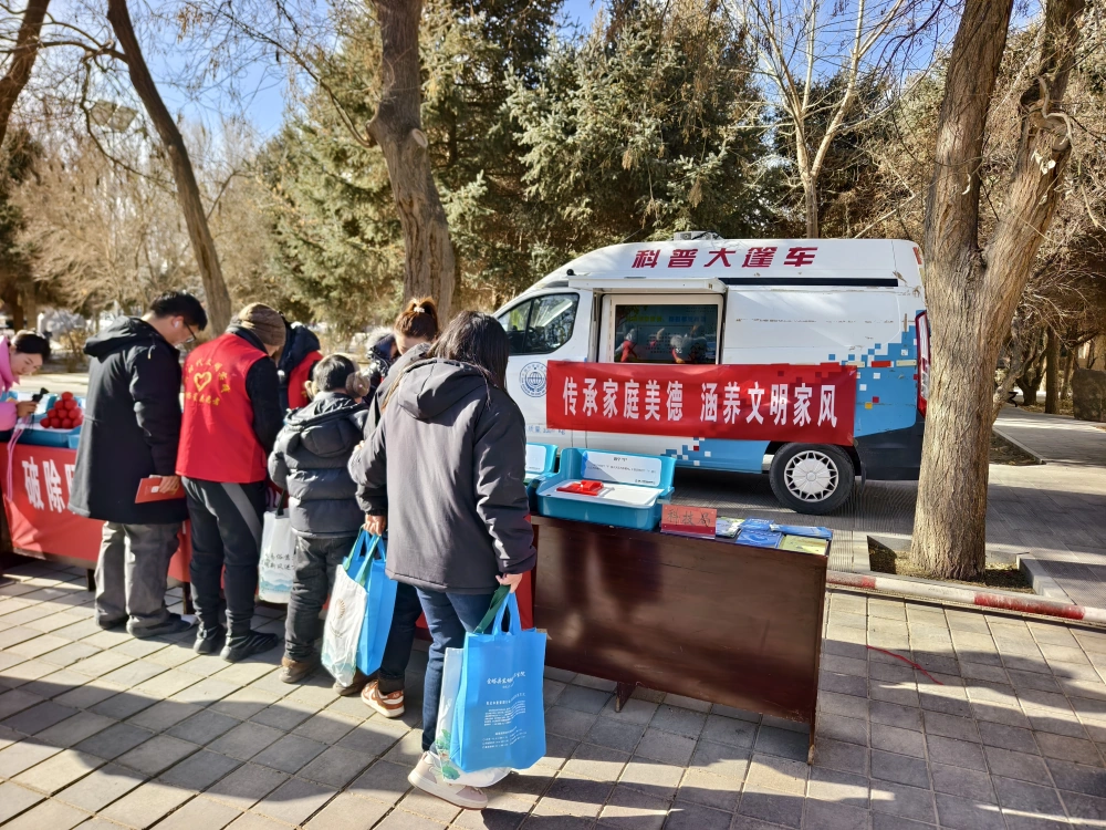 2025年12月10日金塔县各单位在航天广场开展“移风易俗专题宣传活动”活动。活动主题为“推动移风易俗,弘扬时代新风”,县科协积极将科普大篷车开进广场,为公众宣传科普知识。