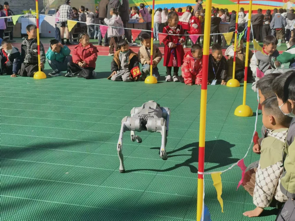 机器狗互动环节更是将活动气氛推向高潮。憨态可掬又功能强大的机器狗时而灵活奔跑、时而翻滚跳跃,还能响应孩子们的简单指令做出握手、转圈等动作。孩子们争先恐后地与机器狗互动,近距离触摸科技产品,在轻松愉快的氛围中拉近了与前沿科技的距离,好奇心与探索欲被充分激发。
