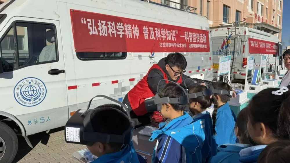 12月4日,鄂尔多斯科技馆科普大篷车携专属IP形象“百嘎丽”奔赴达拉特旗,风水梁镇中心小学,以流动为翼、以科技为媒,将沉浸式“移动科普课堂”搬进校园,为冬日里的孩子们送上一场点燃好奇心、赋能成长路的科学盛宴。