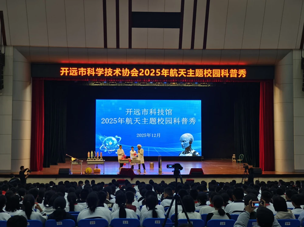 为深入推动科学教育普及、激发青少年科技创新热情,近日,开远市科协携手昆明少科科普团队在开远市8所学校上演“航天科普进校园·少年逐梦向九天”校园科普秀,覆盖师生1.8万人余人。