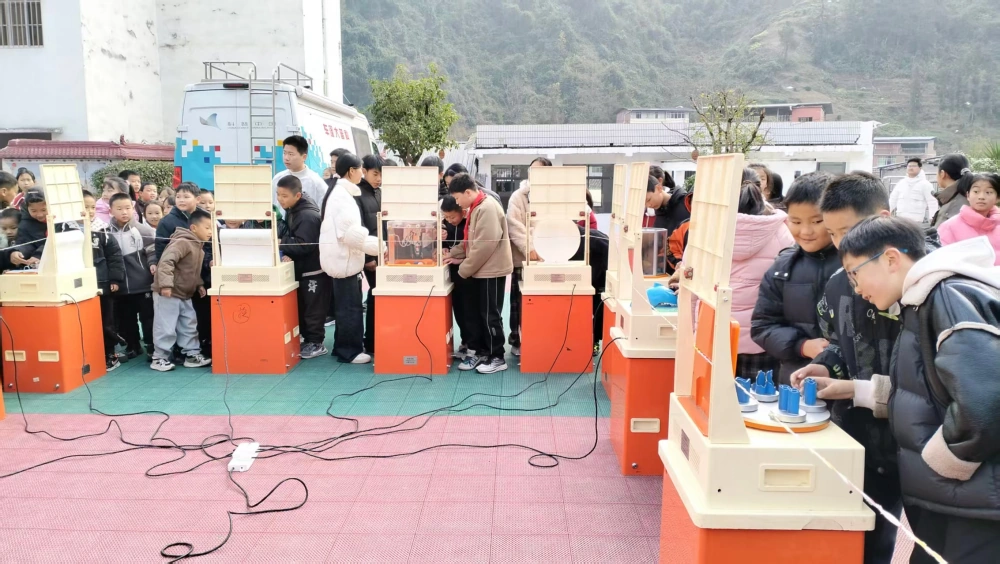 2025年12月17日,达州市科协科普大篷车驶入宣汉县石铁乡中心校,满载24件互动科普展品、趣味科学实验秀及智能机器狗,为全校师生打造了一场沉浸式、零距离的科普盛宴。