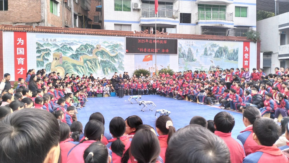 2025年12月18日,科普大篷车进校园,机器狗助阵燃爆科学热情,达州市科协携科普大篷车走进宣汉县芭蕉镇中心小学,以“静态体验+动态表演”的形式,为师生打造了一场沉浸式科技盛宴。