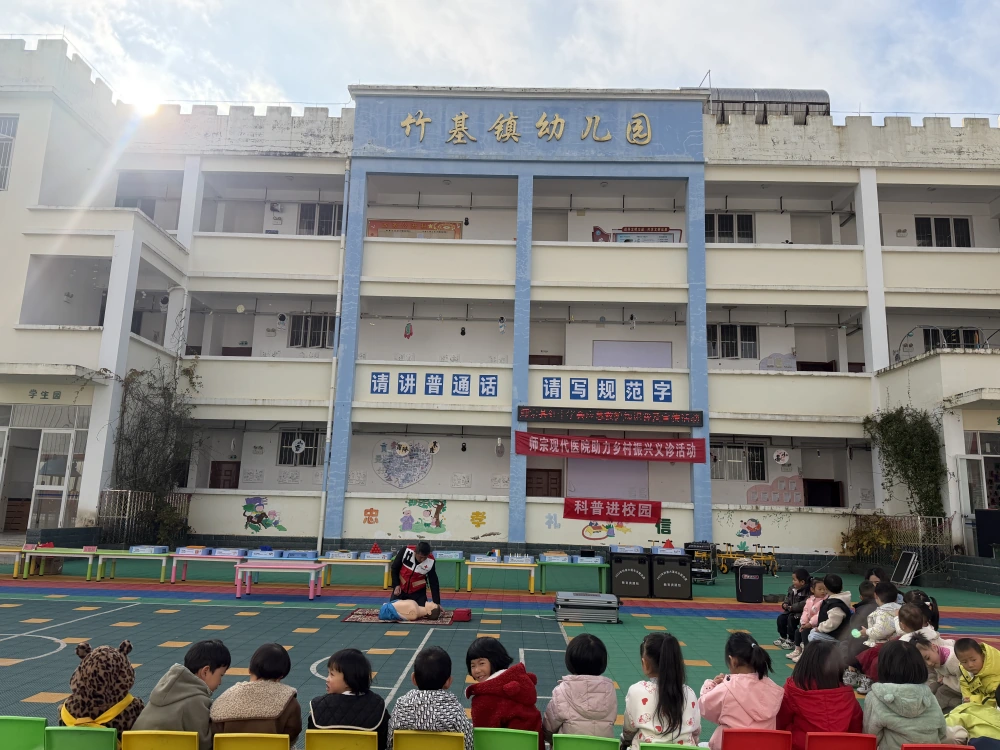为丰富幼儿科普知识储备,提升健康防护意识,2025年12月16日,师宗县科协联合县红十字会、竹基镇政府、师宗现代医院,走进竹基幼儿园开展科普卫生宣教活动,为孩子们带来一场集趣味科普、急救教学、健康义诊于一体的“健康盛宴”。