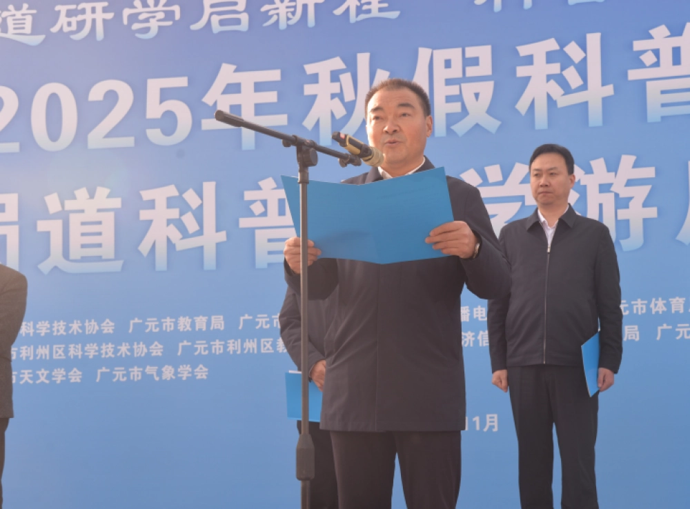 11月19日,广元市2025年秋假科普研学嘉年华暨蜀道科普研学游启动仪式在广元市澳源体育中心北广场举行,聚焦“蜀道研学启新程·科普文旅共赋能”主题,为广元加快打造国际旅游城市注入科技活力。市委常委、副市长魏大勇出席并讲话,利州区委常委、组织部部长任伟霖致辞,市政府副秘书长刘传忠主持启动仪式。