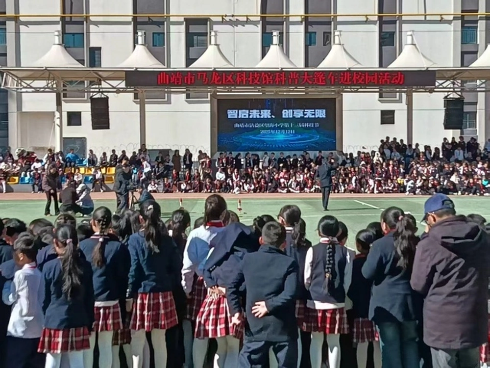 2025年12月12日,马龙区科协受沾益区科协邀请,组织科普大篷车走进沾益区望海小学,全程参与该校“智启未来、创享无限”科技节科普参观体验活动,为全校师生带来了一场别开生面的科普盛宴。