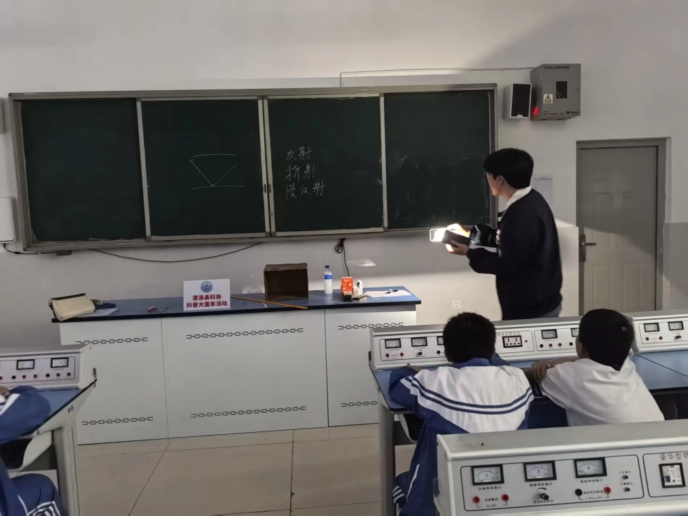 2025年10月20日,漾濞县科学技术协会组织的“科普大篷车”满载趣味与知识,驶入漾濞一中初中部,为同学们带来了一场沉浸式科普盛宴。活动前,县科协与学校精心筹备、周密部署,结合初中生认知特点,量身打造了以“光的奥秘”为核心的科普内容,确保活动兼具知识性与互动性。活动现场,科普志愿者们通过趣味小实验,将抽象的光的折射、反射原理具象化呈现:当激光笔穿过透明水杯改变传播方向,当平面镜组合让物体“隐身”,当凸面镜与凹面镜呈现不同成像效果,同学们纷纷围拢观察、踊跃提问,在亲手操作与细致观察中,直观理解了生活中“水中筷子变弯”“镜子成像”等现象的科学原理,现场欢笑声与惊叹声不断。