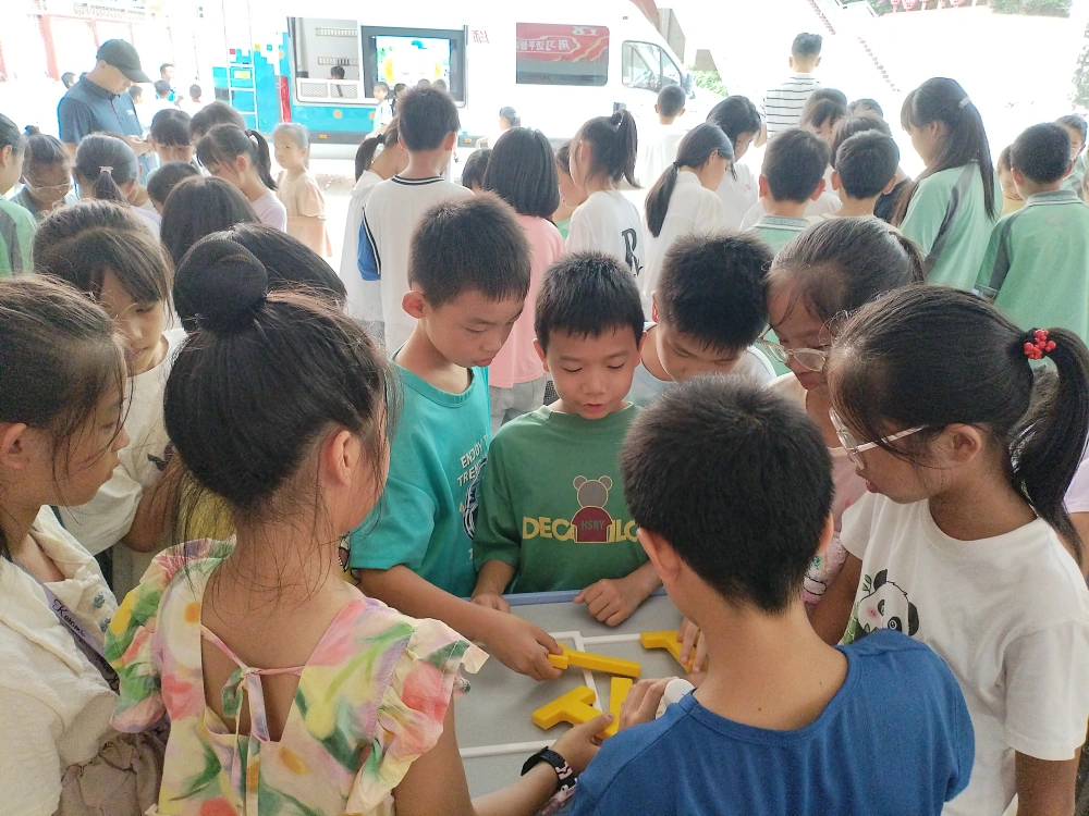 在科普大篷车的活动现场,Go2四足机器人占足了众人眼球,欢呼声惊叹声响彻在学校在社区在村镇,独立钻石棋、八皇后、多彩的拼块、六边形游戏等益智类游戏也颇受欢迎,设备的周围总是围满着参与游戏的观众;对于科普大篷车的车载视频设备,县科协付费下载了消防、反诈、安全教育、学科教育等各方面的科普视频,让学生、群众和村民们在安全、生活、学习等各方面得到科学普及。