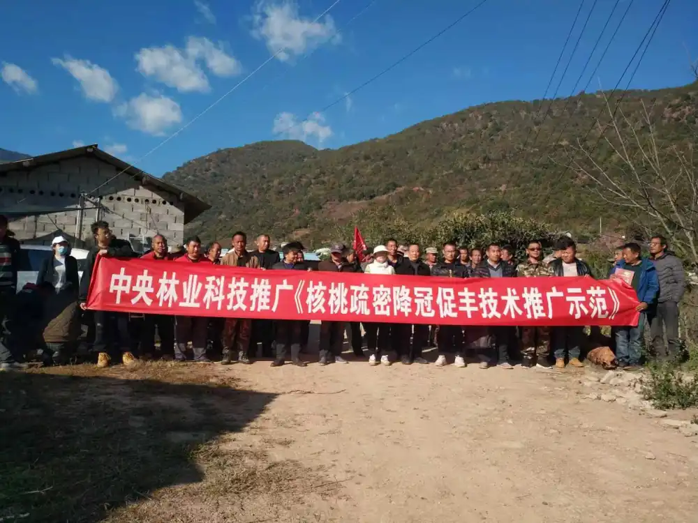 科普宣讲环节,志愿者结合漾濞泡核桃生长特性与栽培技术要点,详细讲解了采收期的科学判断标准、无伤采收技巧,重点强调了上树作业系安全绳、远离电线、雨天不采收等安全注意事项;针对核桃种植中的常见问题,现场答疑解惑,指导种植户通过科学管护减少大小年现象、提升坚果品质与出仁率。