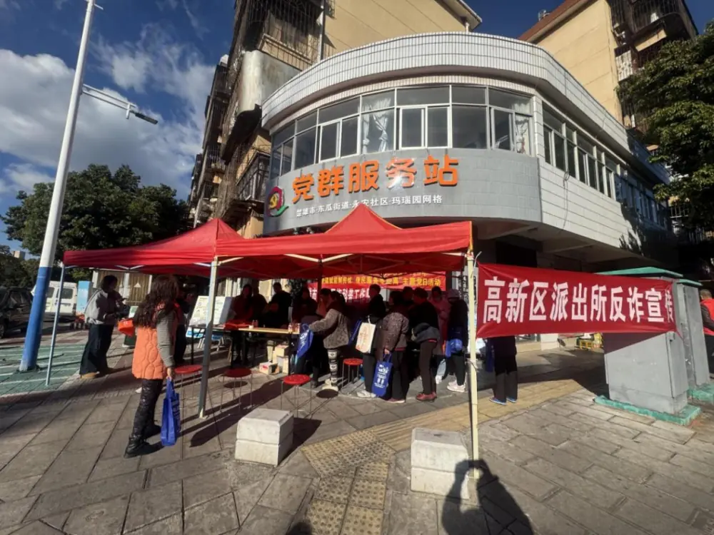 活动现场,红色帐篷下的服务点人气十足:工作人员向居民发放饮食健康手册、防诈骗宣传页等资料1000余份,结合案例讲解电信诈骗常见套路;高新区派出所民警手把手教居民识别诈骗话术;艾尔眼科医护人员则为老人免费测视力、查眼压,提供护眼建议。