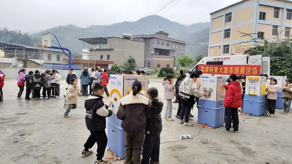 12月11日,盐津县科普大篷车翻山越岭,驶入滩头乡新田小学,为全校181名师生点亮科学之光。此次活动延续了“趣味、互动、启智”的风格,带来了“最速降线”“窥视无穷”“声光反应测试”等二十余项经典互动展品,以及引人注目的无人机与机器狗表演。孩子们在动手探索中感受原理,在欢声笑语中亲近科学。