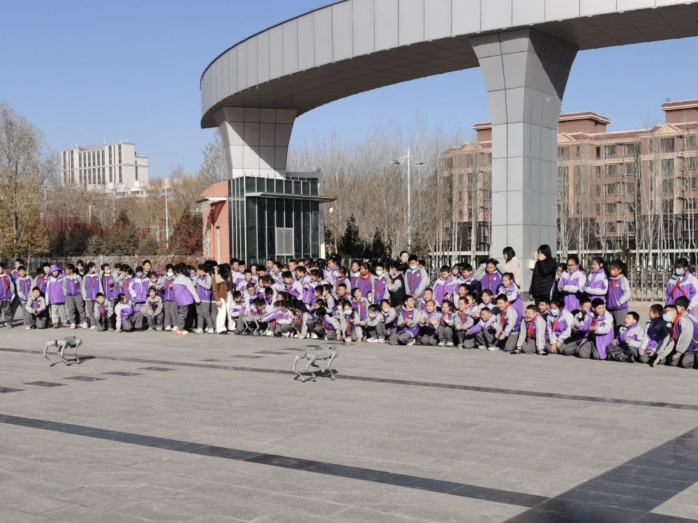 除了传统的科技展品,此次活动还特别展示了四足机器人和阿尔法机器人。四足机器人灵活地行走、跳跃、倒立、前空翻其精准的动作和强大的适应能力让学生们惊叹不已。阿尔法机器人则以其生动有趣的舞蹈和与学生们的互动交流,赢得了阵阵掌声。这些先进的机器人展示不仅让学生们近距离接触到前沿科技,更拓宽了他们的视野,让他们深刻感受到科技的飞速发展和无限可能。