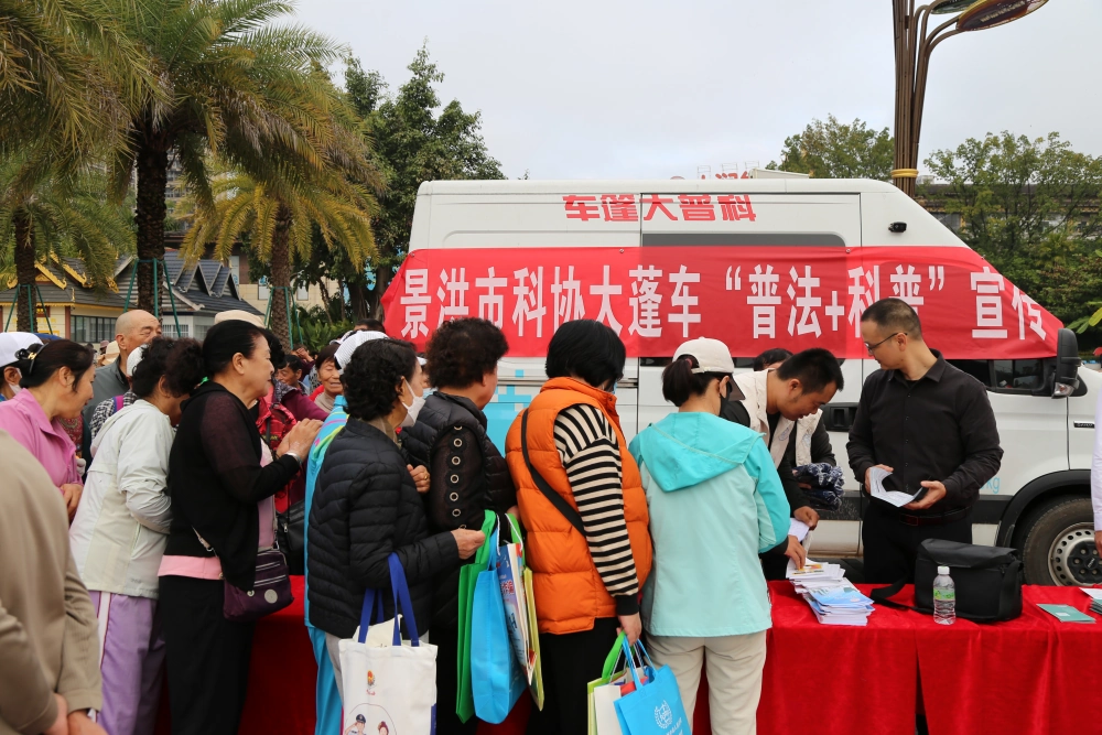 活动前,市科协周密部署,充分发挥科普服务优势,派出科普大篷车深入宣传一线,以群众喜闻乐见的互动问答形式吸引参与,配套发放围裙、雨伞、环保袋等实用小礼品,累计发放宣传资料800余份,现场群众踊跃参与,营造了浓厚宣传氛围。活动中,市科协坚守科普核心职责,创新“科普+法治”宣传模式,结合西双版纳边疆民族地区特点,聚焦民生相关内容设计宣传问答,礼品选择贴合群众日常需求,让宣传活动既接“地气”又聚“人气”,有效凸显地域特色与科协职能。 此次活动通过流动宣传、互动参与等形式,实现了公众法治意识与科学素养“双提升”。