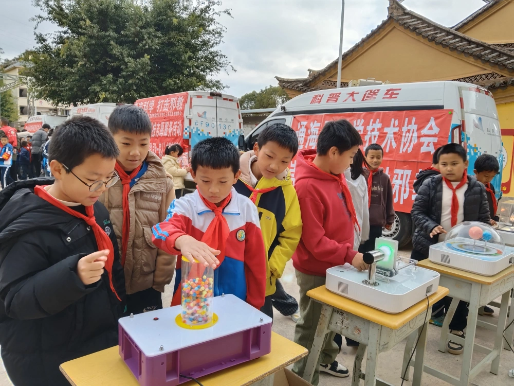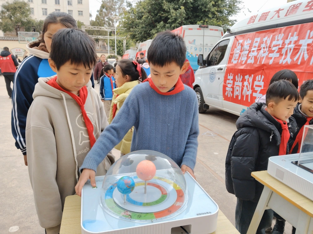 12月25日,通海县科普大篷车开进峨山县甸中中心小学,与玉溪市(县、区)科协联合开展“同唱一首歌,同为一家人”科普宣传进校园文明实践活动。