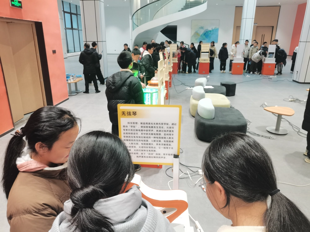 活动现场人气高涨,科普大篷车带来旋转银蛋、无弦琴、窥视无穷等20余件互动展品,覆盖力学、电磁学、光学等多学科知识,学生们有序排队亲手操作体验,在动手实践中解锁科学奥秘,感受科技魅力。科普辅导员同步开展精彩实验秀,马德堡半球直观演示大气压力原理,液氮实验打造梦幻蘑菇云,奇妙的科学现象引得现场惊叹连连,让抽象的科学知识变得生动易懂、触手可及。