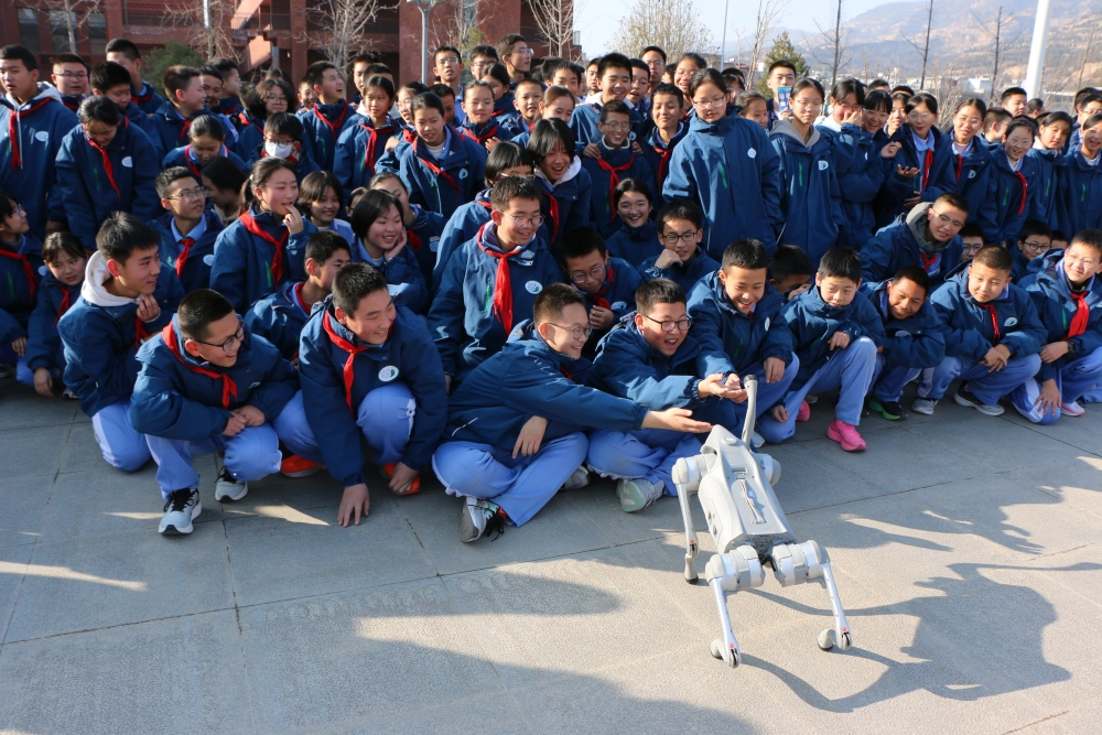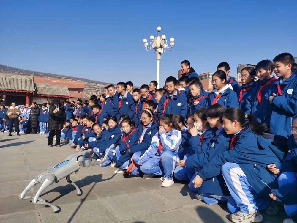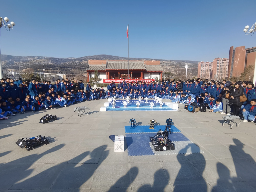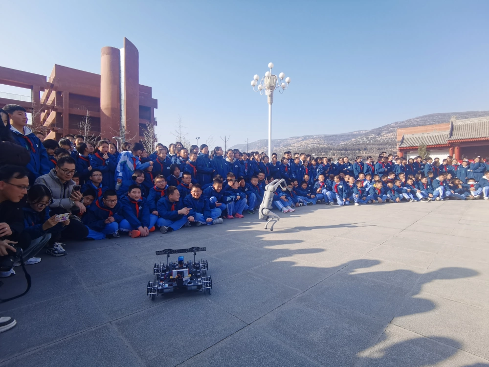 操场中央的机器人展演区人气爆棚。随着动感音乐响起,舞蹈机器人整齐划一地跳起“机械舞”,灵活的身姿、精准的互动,生动诠释了人工智能的智慧与温度,学生们掌声不断。天水师范大学学生带来的科技作品也非常“吸睛”,学生们自己制作的机器人等装置也在变换着动作前进着。作为全场瞩目的“明星”,智能机器狗以精准流畅的跑、跳跃等高难度动作,展现出机器人领域的前沿技术成就,将现场氛围推向高潮。