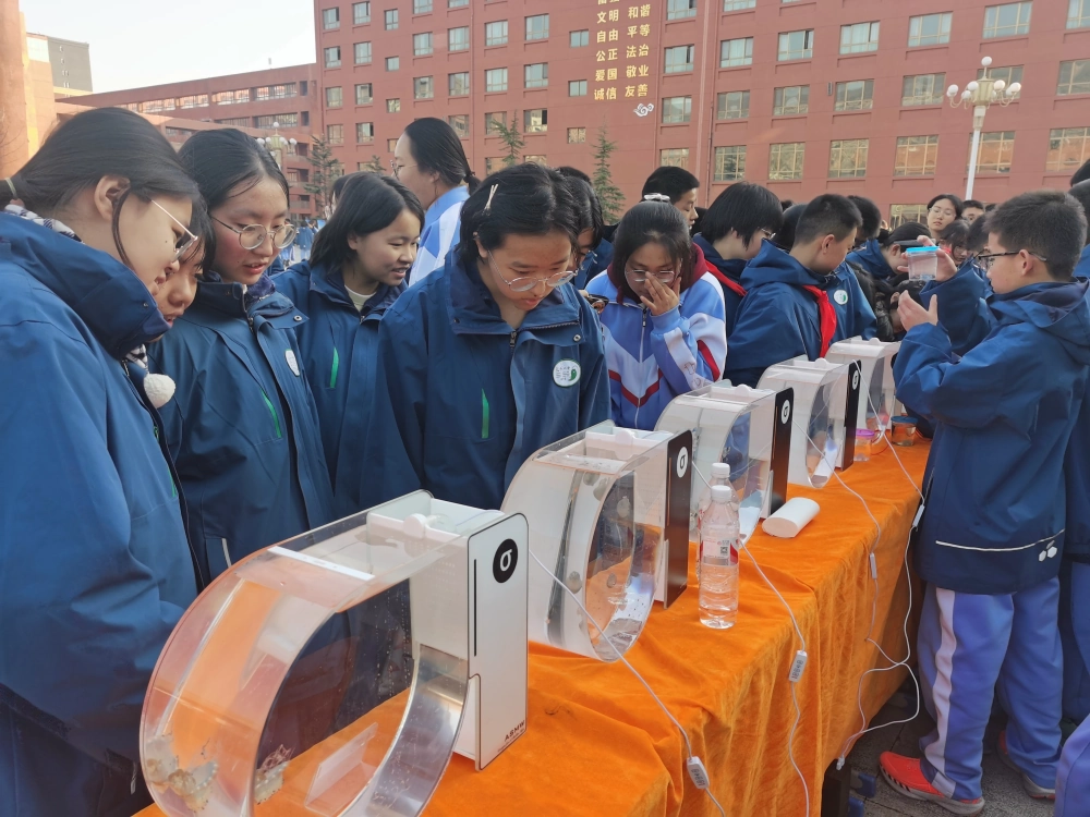 气象局带来的人工降雨火箭弹模型引得学生们驻足观看,学生们向工作人员提问。工作人员给学生们认真讲解其中“人工降雨”的原理,天水市渔业工作站带来的海洋生物标本前也围满了学生们,他们好奇的仔细观看。海洋乐园展区前摆满了活的水母和小型生物,各个年级的学生们惊奇不已。三和数码公司和科锐公司的无人机起飞、降落引得学生们欢呼声不断。科普实验秀活动人气爆棚,沉浸式互动体验吸引大批师生参与。“马德堡半球实验”“空气水火箭”等科普实验,互动性强、趣味满满,成功点燃青少年群体的科学探索热情。